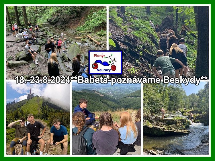 Jako každý rok jsme vyrazili poznávat Česko. Tentokrát do Beskyd - 18.-23.8.2024. Cestou jsme se zastavili u kapličky na Soláni a podnikli výlet po okolí. Postupně jsme navštívili Lysou horu, po cestě jsme se řešili dobu rozkladu různých odpadů. Následující den jsme vyrazili na hrad a oboru Hukvaldy, kde jsme se seznámili ochranou motýlů a chráněné kořenové systémy ve zdejší oblasti. Následný den jsme vyrazili na Pustevny a Radhošť. Tady krom výhledů a zajímavých míst jsme na trase z Radhoště do Trajonovic poházené odpadky. Výsledek byl za 8 km, 30 lidí 33 velké igelitky. Následný den jsme sestoupili k řece Ostravici, kde jsme se koupali a částečně vybírali odpadky kolem břehu a následoval lehká procházka po okolí. Poslední den jsme věnovali výletu na Skalku a Ondřejník, kde byli krásné výhledy na Beskydy s dominantou Lysá hora. Na chatě pak následoval úklid spojen s přetříděním tříděného odpadu.**MS