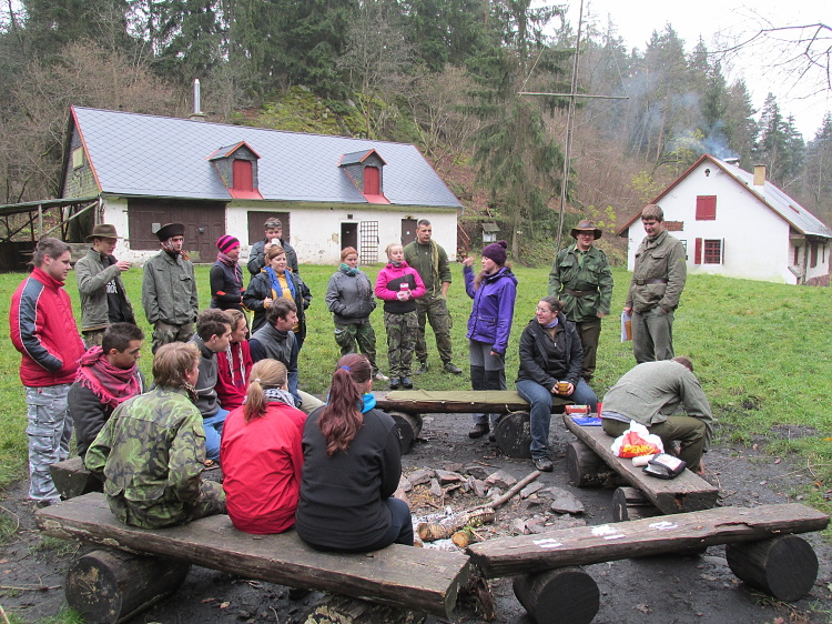 Po zabydlení jsme ještě rozdělali oheň, rozdali pár pokynů ke zdárnému průběhu víkendu, a vyrazili na kutě.