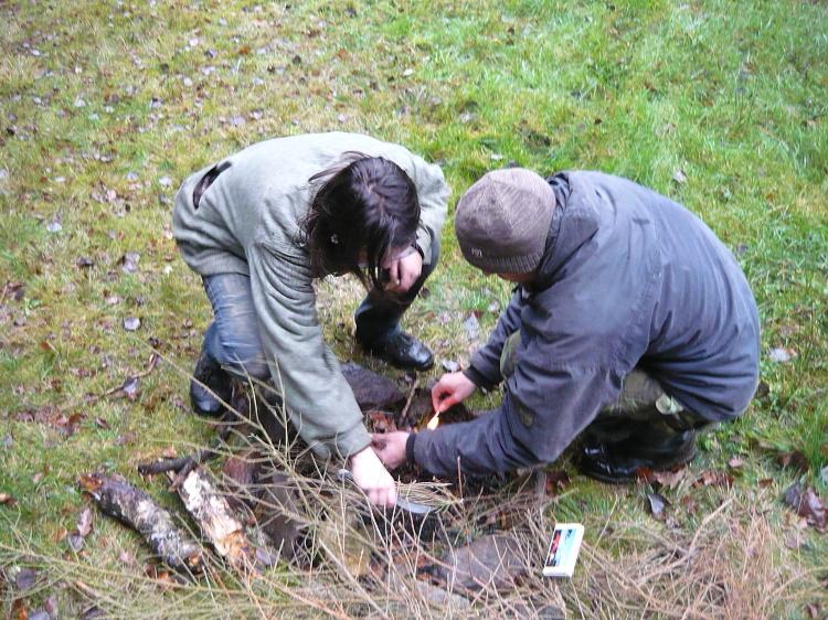 Letos jsme se rozhodli, že pro naše mladší postavíme Medvěda u sousedů archeologů, aby si užili táboření v „zimě“. Nepředpokládali jsme, po vzoru let uplynulých, že by napadl sníh, ale teplota pod patnáct stupňů také není k zahození. Na místě jsme se scházeli postupně a i proto jsme stavěli už za tmy a dříví dělali také za svitu čelovek. První večer jsme strávili konzumací vybraných lahůdek, povídáním a zpěvem. Protože jsme se zase dlouho neviděli, tak jsme povídáním strávili velikou část noci. Ráno, po snídani, se vylosované dvojice zúčastnily sobotní soutěže. Prvním úkolem bylo sesbírat co nejvíce lístečků s čísly. Byly poschovávané doopravdy všude. Po přinesení a vyhodnocení si dvojice vylosovaly deset čísel z přinesených, vylosovali si matematická znaménka a začali počítat, aby dostali co největší výsledek. Po tomto kole jsme se sebrali a vyrazili na inspekční cestu na naší táborovou základnu. Cestou u Indiánů jsme si opět zasoutěžili. Tentokrát zaplanulo několik ohňů na čas. Napřed bylo slyšet pouze lámání větví, ale potom, když všechno utichlo, bylo slyšet pouze škrtání sirek a sakrování, protože tak trochu foukal vítr. Na základně bylo vše v pořádku, prošli jsme se po rybníku a oklikou se vrátili do týpka, kde jsme se naobědvali. Po obědě, pravda trochu pozdním, byla vyhlášena poslední soutěž. Každá dvojice měla za úkol vytvořit nějaké umělecké dílo. Minitee-pee a minilodička byly velmi povedené a stav zůstal nerozhodný. Nicméně byly vyhlášeny výsledky, rozdány ceny a vypravili jsme se do Budislavic, rozloučili se s kamarády a podívali se na Budislavické čerty. Kamarádi jeli do Plzně na maturák, ze kterého se vrátili jiní v noci, když už je nikdo ani nečekal. ¨ Ráno jsme vše zabalili, nalodili do auta a odvezli se do Nepomuku, kde jsme se všichni rozloučili a rozešli do svých domovů. Mejla