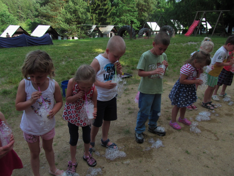 Největším překvapením pro děti byl příjezd dobrovolných hasičů z Nepomuka, kteří nám ukázali, jak se hasí požár a vyrobili pěnu, ze které byli děti nejvíce nadšené.