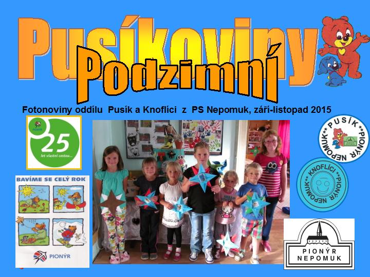 Pionýrské oddíly Pusík a Knoflící ukončily v červnu svůj pionýrský rok 2015/2016. Od loňského září se scházely na svých schůzkách pravidelně každou středu a hodinu a půl zejména tvořily. V každém oddílu je 12 dětí, Pusíci jsou starší děvčata a Knoflici jsou ti mladší z první a druhé třídy.  Naše výtvory jsou zejména z papíru, textilu, korálků, pedigu. . Celkem děti vyrobily  64 výrobků, které zdobí jejich pokojíčky nebo z nich byly pěkné dárky pro rodinu a přátele. K tvoření nás motivují jednotlivé období roku, která jsou vždy ukončena malou výstavkou. Nejhezčí byla podzimní s dýněmi a světýlky. Vánoční a jarní jsou také zajímavé a plné dárků. Získali jsme i tři ocenění na celorepublikové výtvarné soutěži Pionýrský sedmikvítek. Umění našich vedoucích a dětí bylo prezentováno i na  celostátní akci Kamínka v Brně. Připravili jsem i tři výtvarné dílny pro rodiče a přátele pionýra.  Mimo tvořivých ručiček také soutěžím  a  chodíme na výpravy. Uspořádali jsme běh pod Zelnou Horou, drakiádu, vánoční přespání na klubovně, karneval, slet čarodějnic,výlet do Strakonic. Fotografie ze všech schůzek, akci a zdokumentované výrobky najdete na našich oddílových webových stránkách. Symbolickou jedničku na vysvědčení si určitě zaslouží všechny děti z našich oddílů, ale také i jejich vedoucí Alena Březáková, Monika Týmlová a Míra Dvořák.