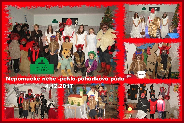 Pionýr Nepomuk připravil na klubovně oblíbené Nebe-peklo-pohádková půda. Dvorek byl plný čertíků s pekelnými úkoly. V klubovně Mikuláš s anděly rozdával za básničku dárky a půda byla pohádková a letos i se Zelenou Horou a šternberskou vrchností. K vidění byla i vánoční výstavka pusíkovského tvoření. Děkujeme dětem z oddílu Pusík a Jiskra za pomoc při zajištění této akce.