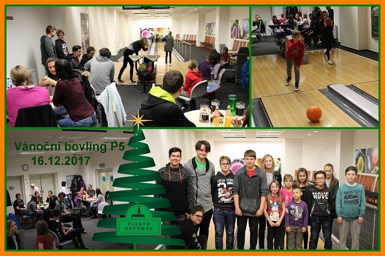 Tak jako každý rok, tak i letos 16.12.2017 uspořádala skupina P5, při pionýrské skupině Nepomuk, vánoční turnaj jednotlivců v bowlingu. Místo konání Éčko v Plzni. Turnaje se zúčastnilo 10 dospělých a 15 dětí.Turnaj dětí byl zahájen prvním kolem v 11,00 hodin a ukončen posledním hodem ve 13,00 hodin. Následovalo předání pamětních listů s výsledky jednotlivých kol a předáním odměn dětem.Turnaj dospělých byl zahájen ve 15,00 hodin a ukončen v 17,00 hodin Všichni účastníci se dobře bavili a ve sportovním duchu bojovali o co nejlepší výsledek *MH.