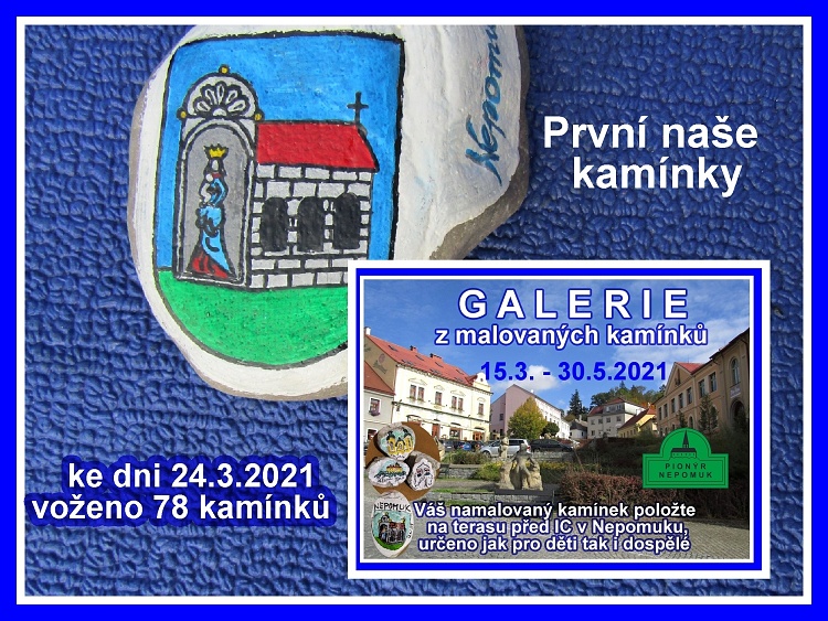 Galerie z malovaných kamínků se nám rozrostla a bylo do ní vloženo 78 kamínku. Mrzí nás, že některé kamínky byly odneseny. Foto galerii budeme doplňovat a jednou týdně aktualizovat. Výstavka pokračuje dál, těšíme se na další malované kamínky. Kromě motivů z našeho města a okolí, můžete namalovat velikonoční kamínek a také různé obrázky zvířátek, květin, pohádek atd. Podívejte se a nechte se inspirovat. Foto po rozkliknutí nadpisu článku.