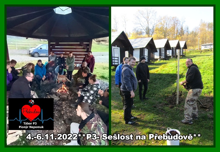 Podzimní sraz klubu P3 (5.-6.11.2022) na táborové základně v Přebudově se nesl ve velmi přátelském duchu. Během prosluněných dnů jsme se věnovali hodnocení uplynulého tábora, rozvoji skupinové spolupráce a vymýšlení tématu na následující rok. V neděli jsme se v hojném počtu zapojili do akce sázení stromů na naší základně.** Miluška R.