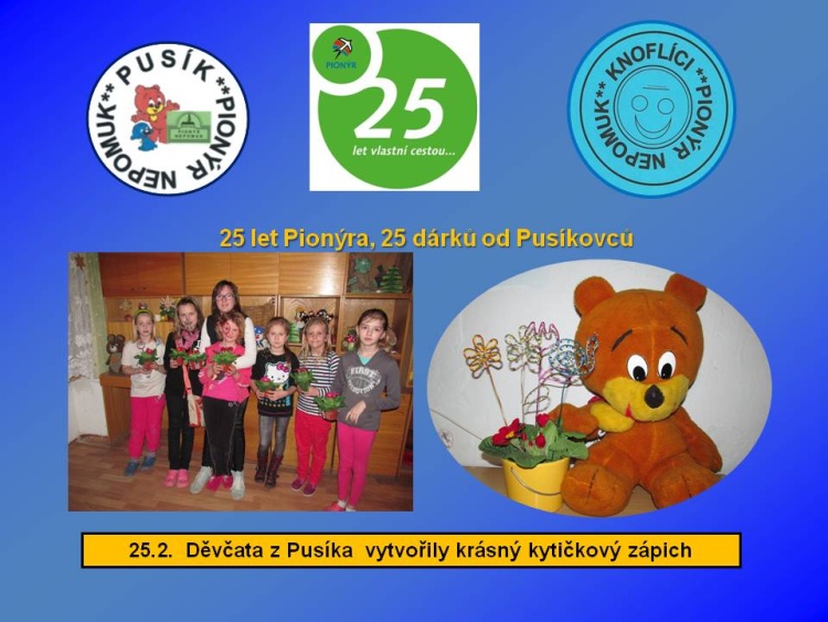 Naše dětská organizace Pionýr připravuje a organizuje volný čas dětem a dospělákům v malém městečku jižně od Plzně.