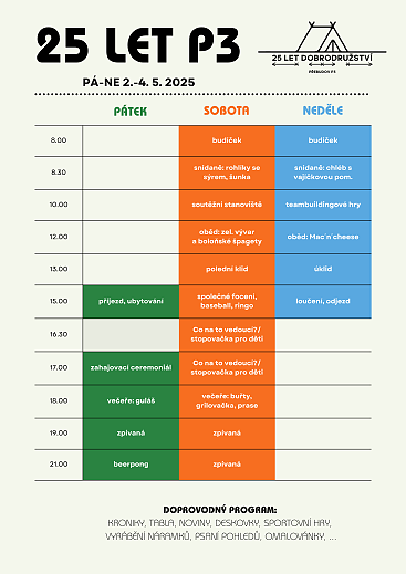 Pionýrská skupina Nepomuk připravila pro léto 2025 šest táborových běhů, tábor rodičů s dětmi a tři příměstské tábory.. O přihlášky na tábory si můžete napsat nebo zavolat na kontakty uvedené v letáčku. img